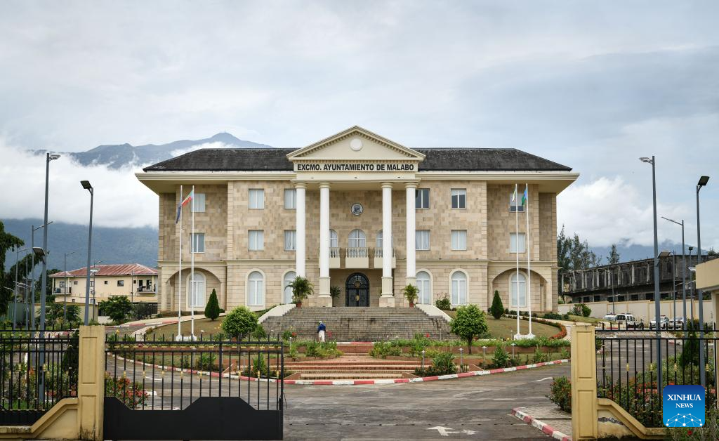 This photo taken on May 18, 2024 shows the City Council of Malabo in Malabo, Equatorial Guinea. Malabo is situated in the northern part of Bioko Island. The city serves as the political, commercial, financial, and cultural hub of Equatorial Guinea. It is also a major aviation hub and an important seaport of the country. (Xinhua/Han Xu)