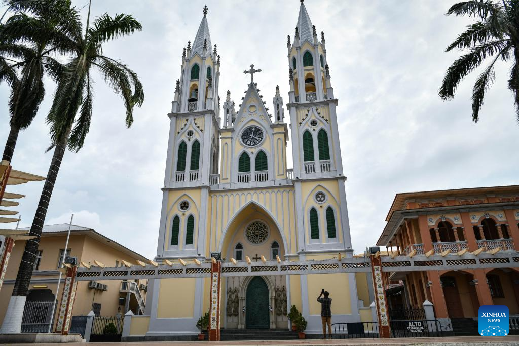 This photo taken on May 20, 2024 shows St. Elizabeth's Cathedral in Malabo, Equatorial Guinea. Malabo is situated in the northern part of Bioko Island. The city serves as the political, commercial, financial, and cultural hub of Equatorial Guinea. It is also a major aviation hub and an important seaport of the country. (Xinhua/Han Xu)