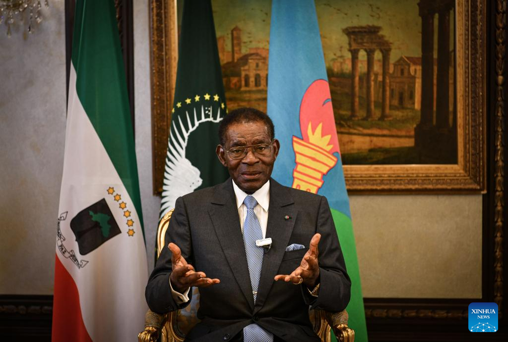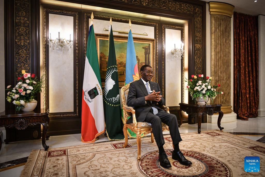 Equatorial Guinean President Teodoro Obiang Nguema Mbasogo speaks during an interview with Xinhua in Malabo, Equatorial Guinea, May 22, 2024. (Xinhua/Han Xu)