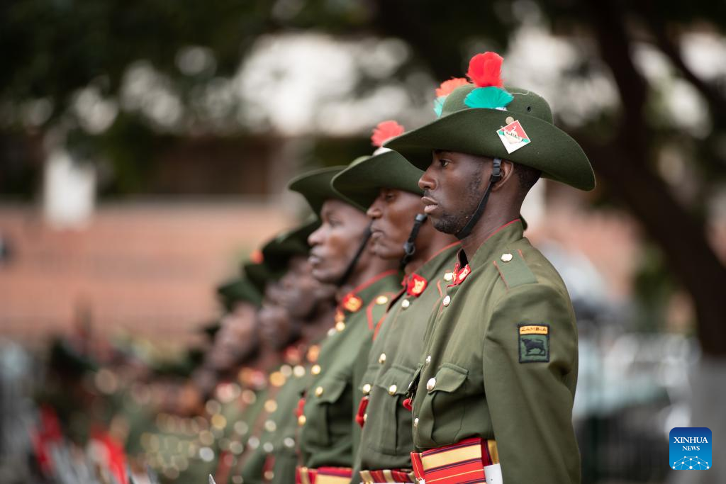 Soldiers take part in an Africa Day commemoration in Lusaka, Zambia, May 25, 2025. Zambia on Sunday commemorated Africa Day 2025, marking the 62nd anniversary of the African Union. (Xinhua/Peng Lijun)