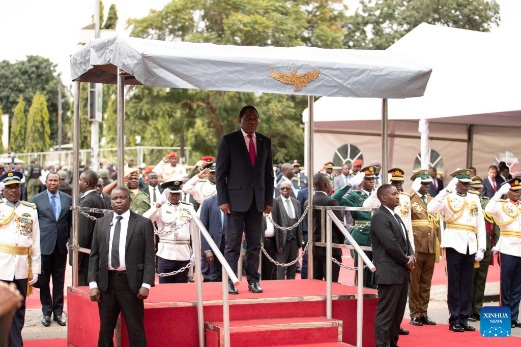 Zambian President Hakainde Hichilema (C) attends an Africa Day commemoration in Lusaka, Zambia, May 25, 2025. Zambia on Sunday commemorated Africa Day 2025, marking the 62nd anniversary of the African Union. (Xinhua/Peng Lijun)
