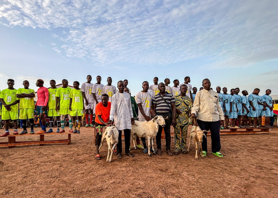 Photo taken on May 25, 2024, shows a view of the awarding ceremony after the final of the first edition of African "Village Super League" in Parakou, Benin. (Xinhua/Li Yahui)
