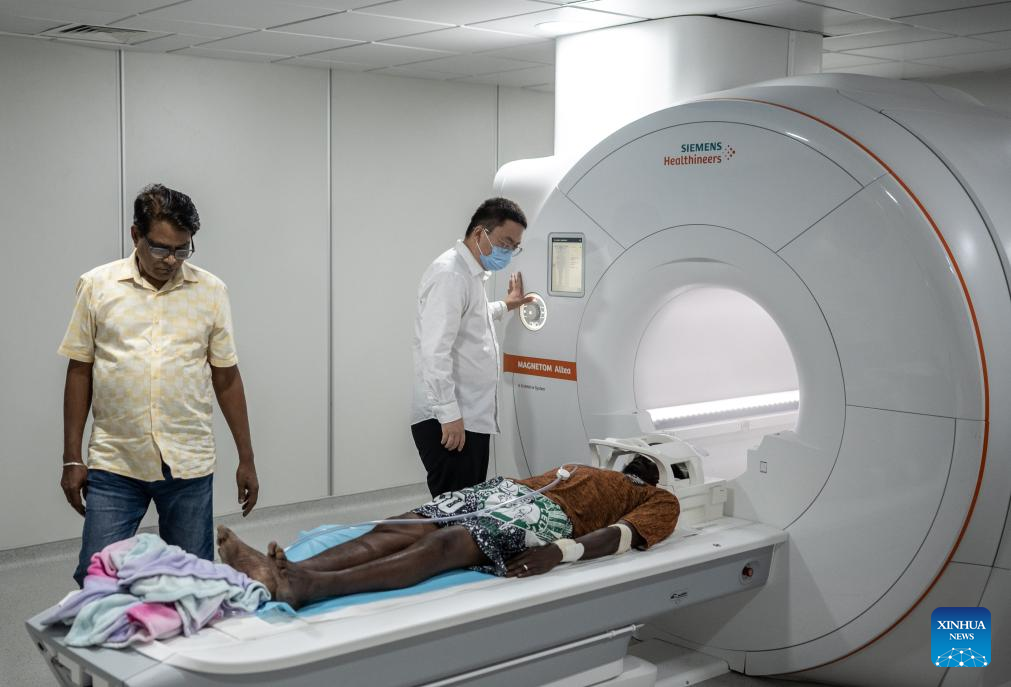 Chinese medical team member Sun Shining operates an MRI machine at Victoria Hospital, in Victoria, Seychelles, June 5, 2024. The 19th Chinese medical team dispatched to Seychelles has been providing medical services to the public since their arrival in May of last year. (Xinhua/Wang Guansen)