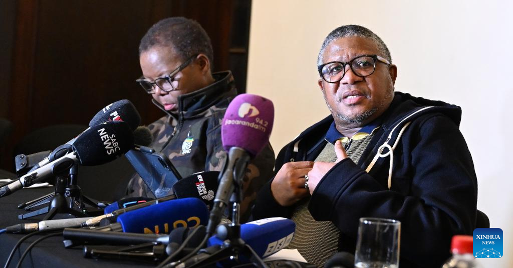 African National Congress (ANC) Secretary-General Fikile Mbalula briefs the media after a meeting of the ANC's National Executive Committee in Cape Town, South Africa, on June 13, 2024. South Africa's ruling African National Congress (ANC) looks forward to the establishment of a government of national unity, said the party's Secretary-General Fikile Mbalula on Thursday. (Photo by Xabiso Mkhabela/Xinhua)