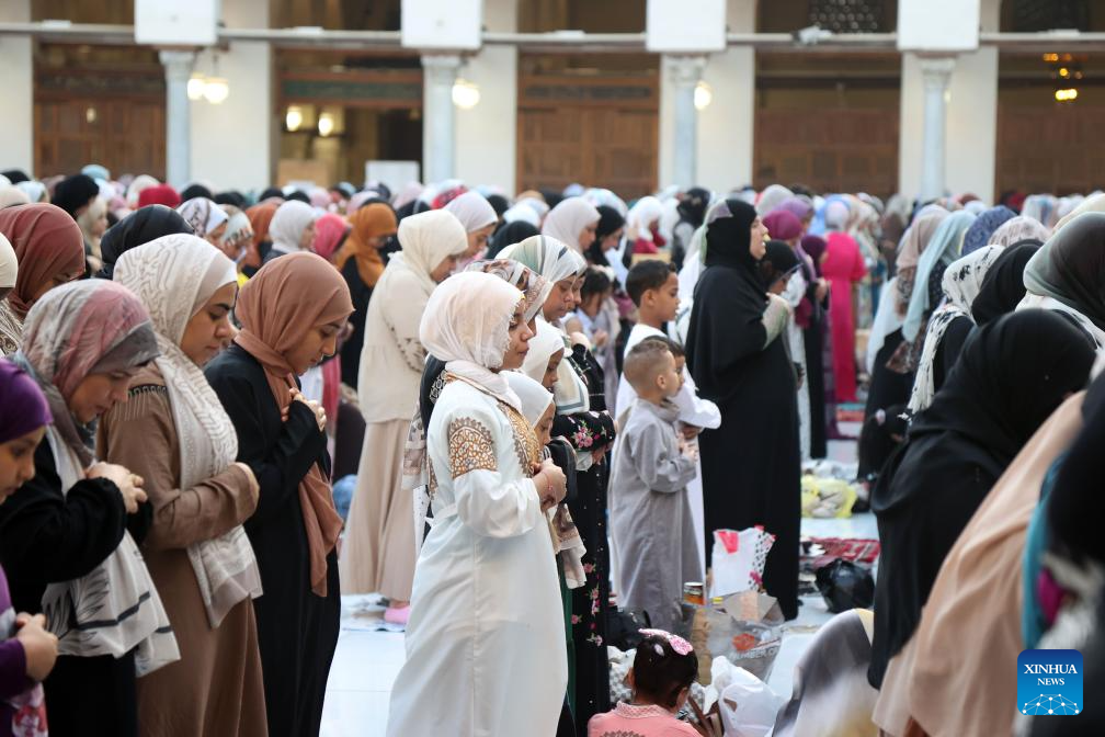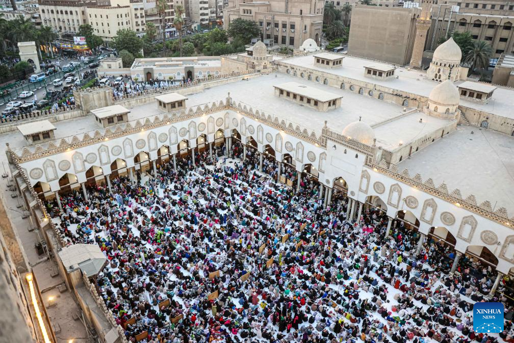 People gather for a Eid al-Adha prayer at Al-Azhar Mosque in Cairo, Egypt, on June 16, 2024. (Xinhua/Ahmed Gomaa)