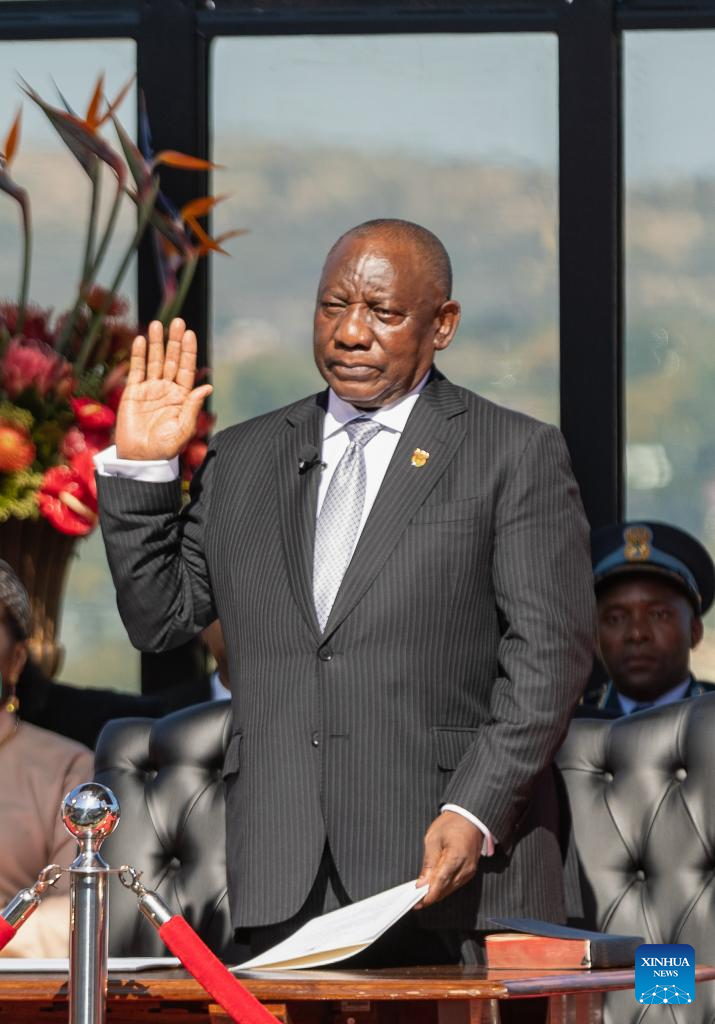 JOHANNESBURG, June 19 (Xinhua) -- Cyril Ramaphosa, leader of South Africa's ruling African National Congress (ANC), took the oath of office as the nation's president for the next five years Wednesday at a ceremony in Pretoria, the administrative capital.