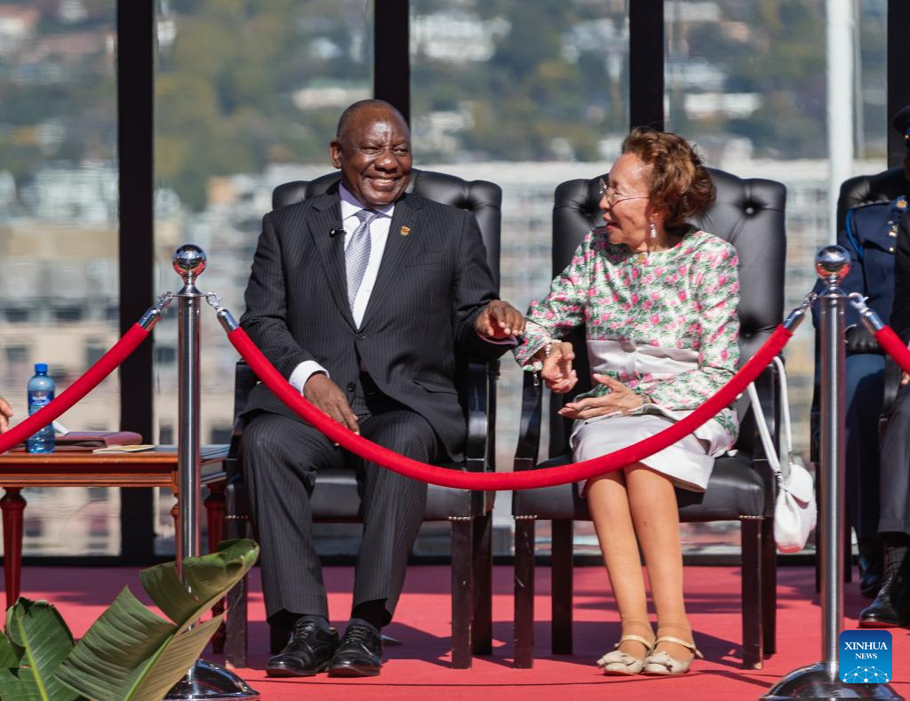 Cyril Ramaphosa (L) and his wife attend the swearing-in ceremony in Pretoria, South Africa, June 19, 2024. Ramaphosa, 71, leader of South Africa's ruling African National Congress (ANC), was reelected as South African president by the National Assembly, the lower house of parliament, on June 14, receiving 283 votes. (Xinhua/Zhang Yudong)
