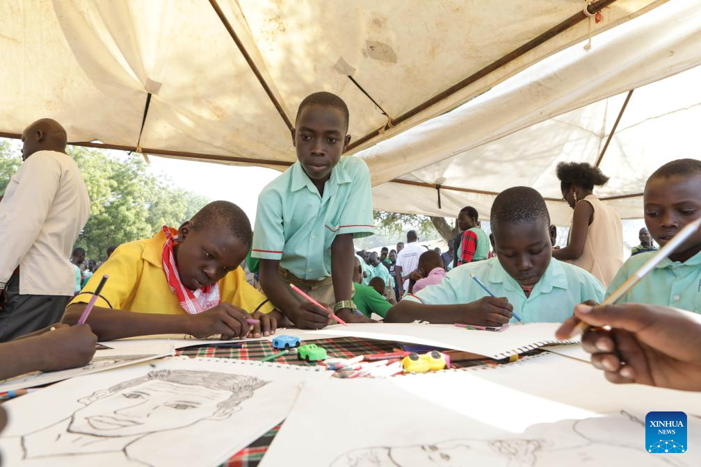 Pupils participate in art drawing during a sports and art gala at Kasemeri Primary School in Moroto, northeastern Uganda, on June 20, 2024. (Photo by Hajarah Nalwadda/Xinhua)