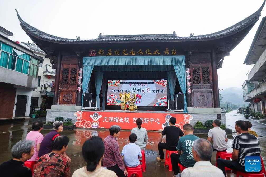 Artists from a local folk troupe of Wu Opera perform on the stage in Zhengdian Village of Lipu Town, Jinhua City, east China's Zhejiang Province on June 25, 2024. (Xinhua/Xu Yu)