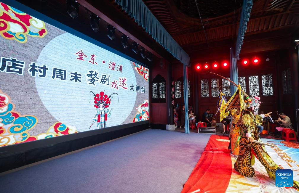 An artist from a local folk troupe of Wu Opera performs on the stage in Zhengdian Village of Lipu Town, Jinhua City, east China's Zhejiang Province on June 25, 2024. (Xinhua/Xu Yu)