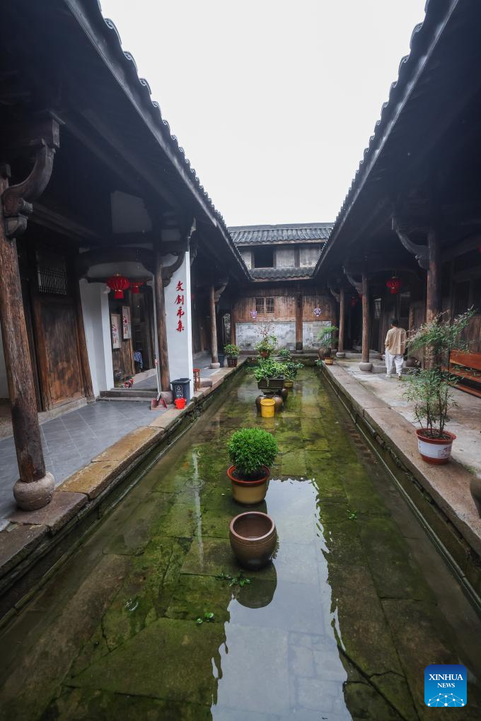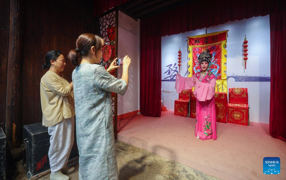 An artist from a local folk troupe of Wu Opera performs for tourists at a Wu Opera themed intangible cultural heritage museum in Zhengdian Village of Lipu Town, Jinhua City, east China's Zhejiang Province on June 25, 2024. (Xinhua/Xu Yu)