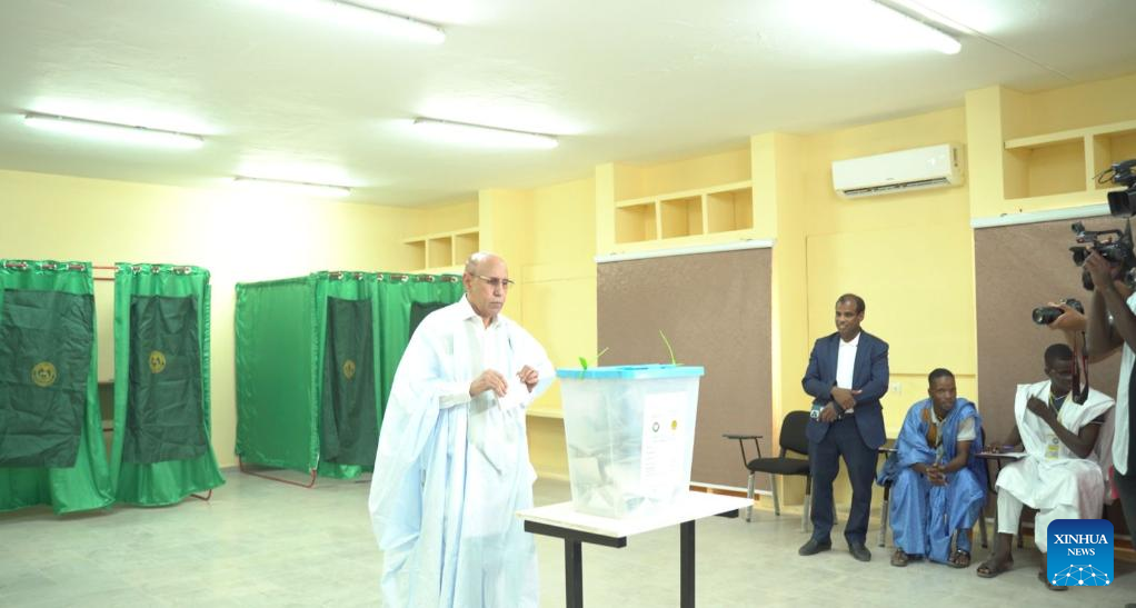 Voters are casting their ballots to elect their new president from among seven candidates, including the outgoing president, Mohamed Ould Cheikh El Ghazouani, and his main rival, Biram Dah Abeid, who finished second in the 2014 and 2019 presidential elections. (Photo by Cheikh Ahmed/Xinhua)