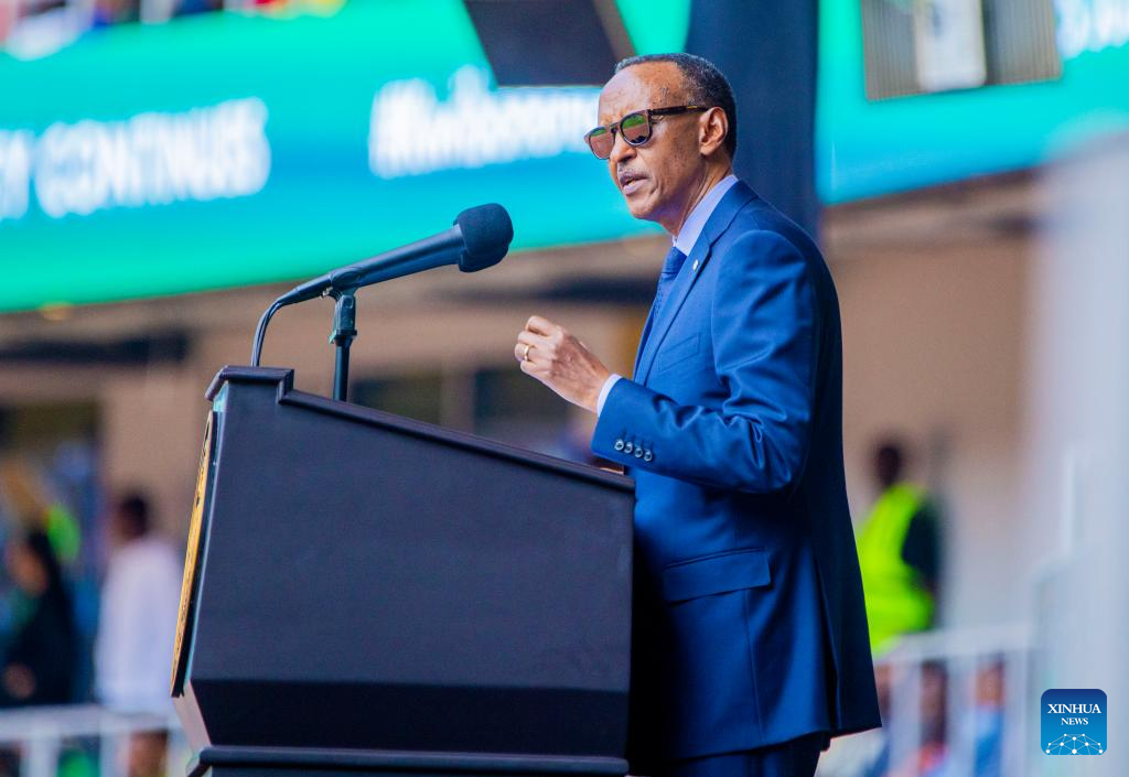 Rwandan President Paul Kagame delivers a speech at Amahoro Stadium in Kigali, Rwanda, on July 4, 2024. Rwanda on Thursday marked the 30th anniversary of its liberation with a grand celebration at Amahoro Stadium in Kigali, the Rwandan capital. (Photo by Cyril Ndegeya/Xinhua)