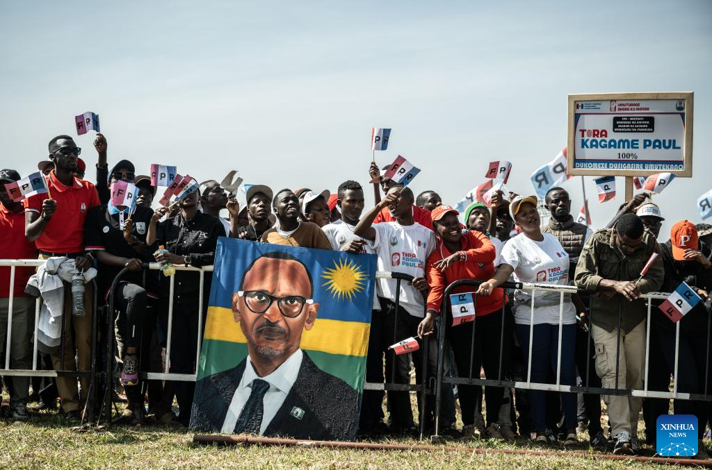 Supporters of Rwandan Patriotic Front (RPF) cheer ahead of the arrival of the incumbent President of Rwanda and presidential candidate for the RPF Paul Kagame during a campaign rally in Kigali, on July 12, 2024. (Xinhua/Wang Guansen)