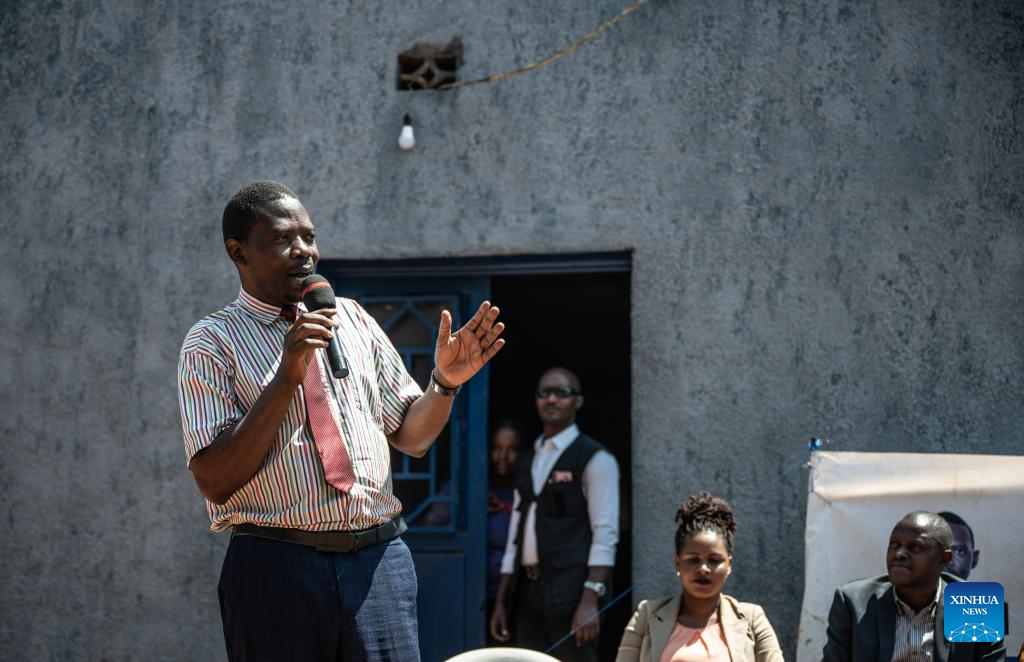 Philippe Mpayimana (1st L), an independent candidate, gives a speech during a campaign at Gicumbi district, Rwanda, July 13, 2024. Rwanda's presidential and parliamentary elections are scheduled for July 14 for Rwandans living abroad, July 15 for those residing in the country, and July 16 for special category representatives. (Xinhua/Wang Guansen)