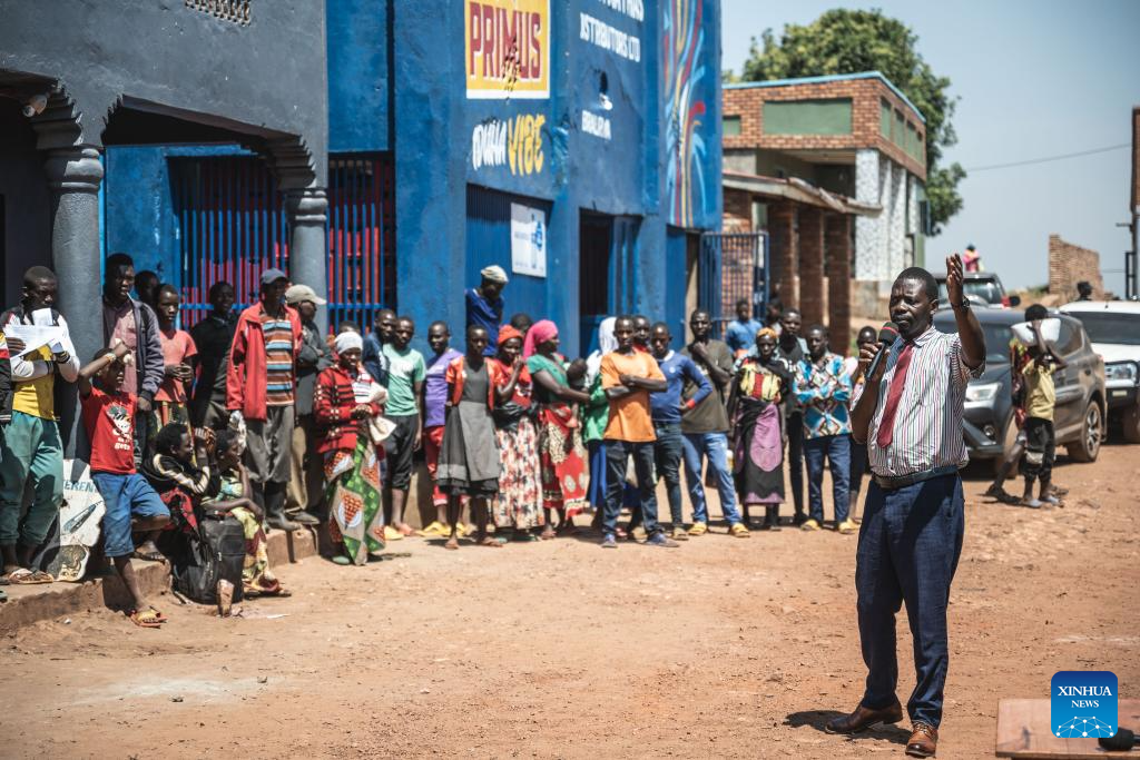 Philippe Mpayimana (1st R, front), an independent candidate, gives a speech during a campaign at Gicumbi district, Rwanda, July 13, 2024. Rwanda's presidential and parliamentary elections are scheduled for July 14 for Rwandans living abroad, July 15 for those residing in the country, and July 16 for special category representatives. (Xinhua/Wang Guansen)