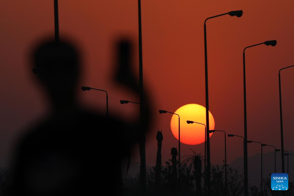 This photo taken on July 18, 2024 shows the sunset scenery over Ain Sokhna Road in Suez Governorate, Egypt. (Xinhua/Ahmed Gomaa)