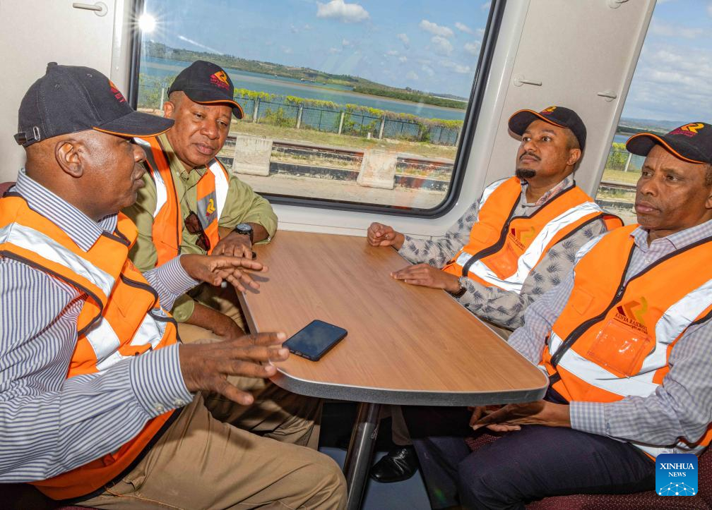 Kenyan officials are seen inside one of the new passenger coaches from China on July 22, 2024.