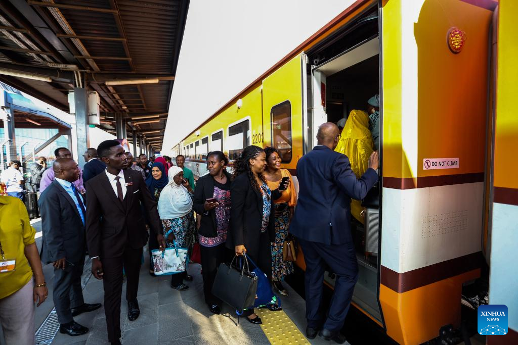DAR ES SALAAM, Aug. 1 (Xinhua) -- Tanzanian President Samia Suluhu Hassan on Thursday officially launched the commercial operation of the country's electric standard gauge railway (SGR) train service from Dar es Salaam to Dodoma, the capital of Tanzania.
