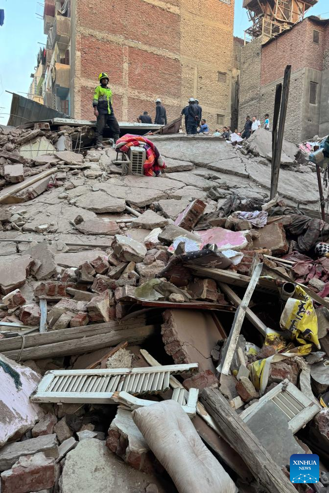 At least one person was killed and seven others wounded in a five-story building collapse that took place on Saturday in a neighborhood in the Shubra district of the Egyptian capital Cairo, the Cairo Governorate said in a statement. (Xinhua/Ahmed Gomaa)