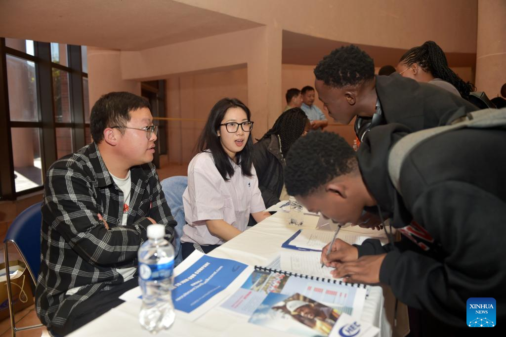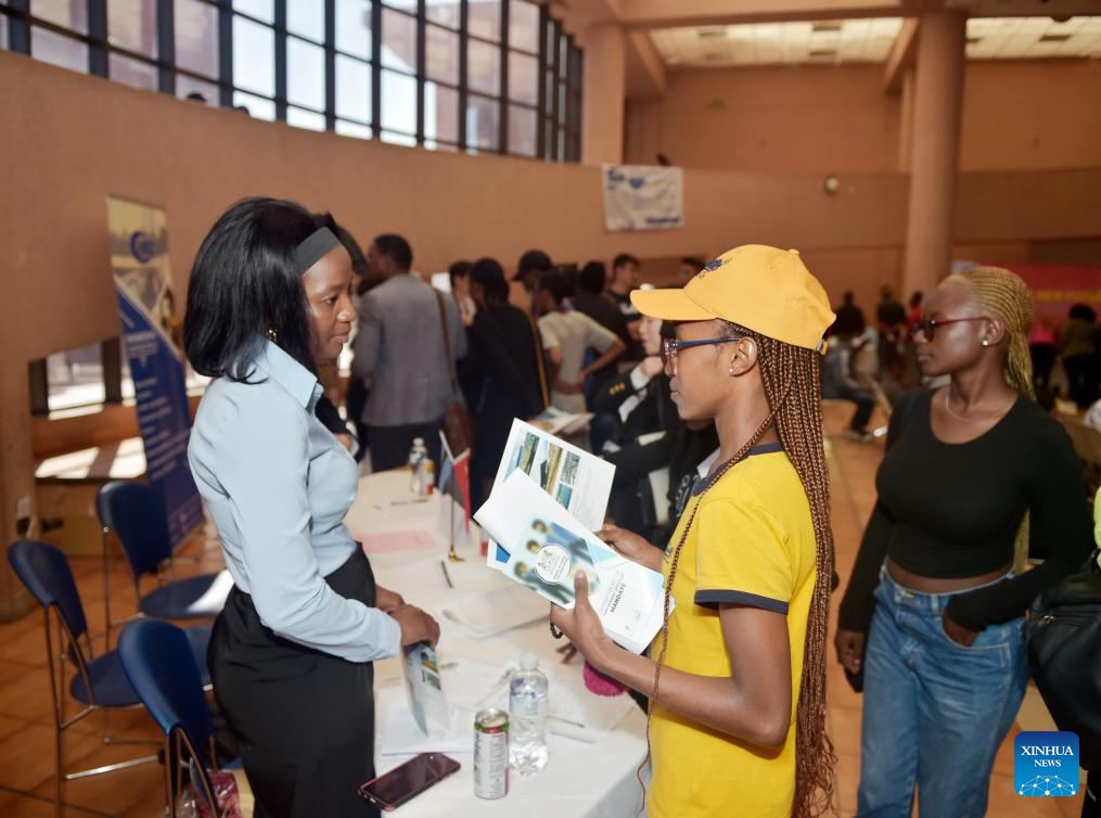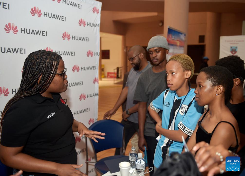 Local graduates talk with staff members of a Chinese company at a job fair held in University of Botswana in Gaborone, Botswana, Aug. 9, 2024. Eight Chinese companies held a job fair in Botswana on Friday, attracting about 200 applicants from various universities.