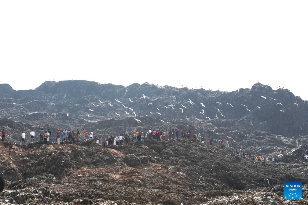 This photo shows the site of a landslide at Kiteezi landfill in Kampala, Uganda on Aug. 11, 2024. The death toll of the garbage dump landslide in Kampala city's Kawempe Division, central Uganda, has climbed to 18, said Lillian Aber, the minister of state for relief, disaster preparedness and refugees, on Sunday. (Photo by Hajarah Nalwadda/Xinhua)