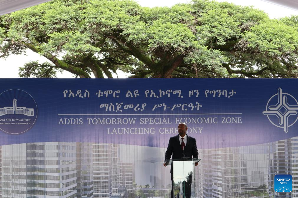ADDIS ABABA, Aug. 14 (Xinhua) -- Ethiopian Prime Minister Abiy Ahmed on Wednesday launched the construction of a Chinese-contracted economic city, known as "Addis Tomorrow Special Economic Zone," at the heart of Addis Ababa, the country's capital.