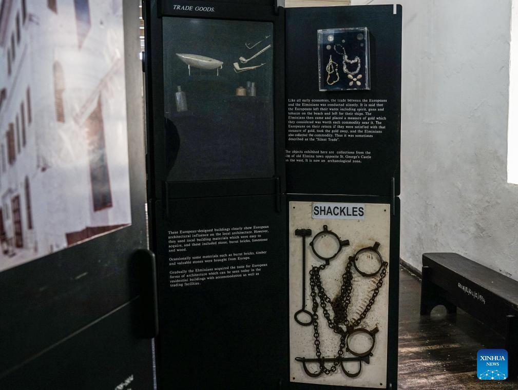 This photo taken on June 19, 2024 shows exhibits of slave trade displayed at the Elmina Castle, a former post for the slave trade by the Europeans in Cape Coast, Ghana. "Slave Coast" refers to a historic region along the West African coast. The name is derived from the trans-Atlantic slave trade on the continent.