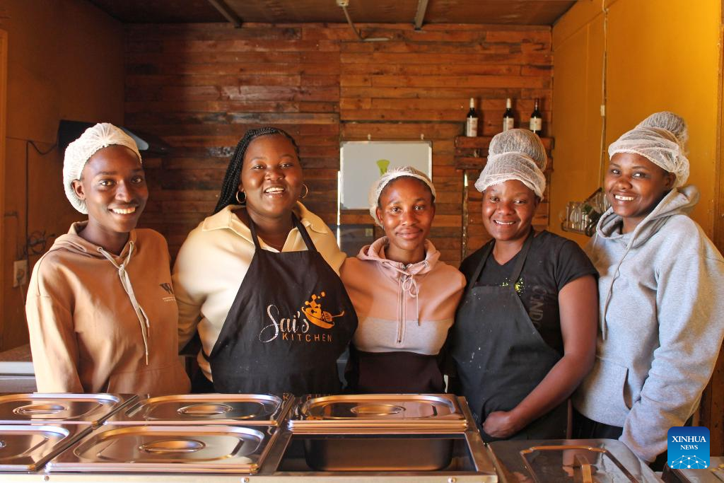 Team members of Sai's Kitchen pose for a group photo at the eatery in the informal settlement popularly known as Havana in Windhoek, Namibia, on Aug. 22, 2024. (Photo by Ndalimpinga Iita/Xinhua)