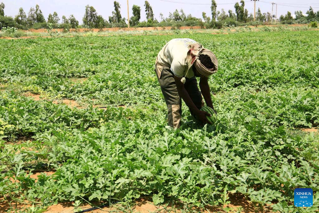 People work on a farm in Omdurman, a city north of Sudan's capital Khartoum, Sudan, Aug. 26, 2024. The Sudanese government on Tuesday denied any food gap in Sudan and called previous reports of famine in the country "exaggerated."
