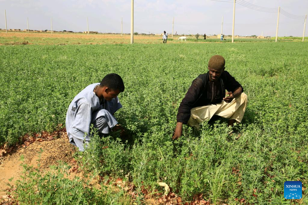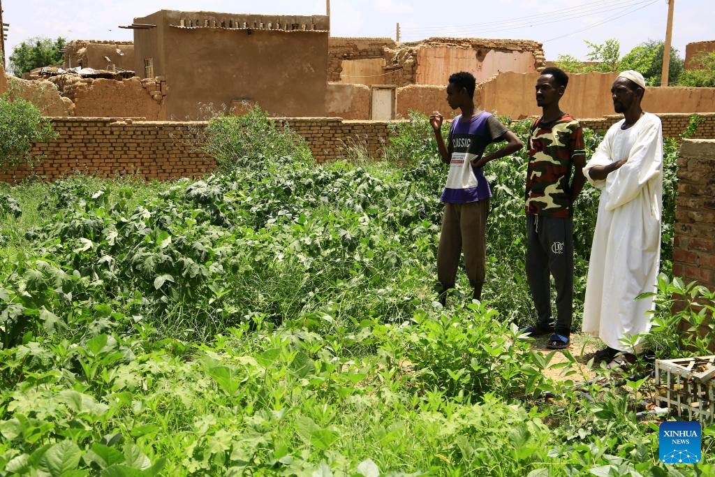 People inspect their farm in Omdurman, a city north of Sudan's capital Khartoum, Sudan, Aug. 26, 2024. The Sudanese government on Tuesday denied any food gap in Sudan and called previous reports of famine in the country "exaggerated."