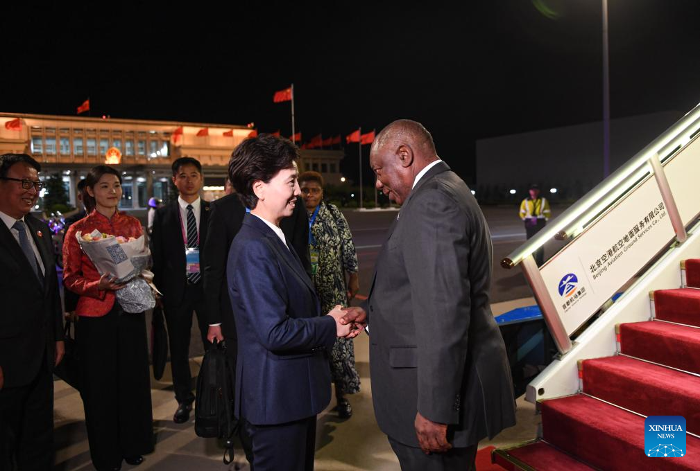 South African President Cyril Ramaphosa arrives for the 2024 Summit of the Forum on China-Africa Cooperation (FOCAC) in Beijing, capital of China, Sept. 2, 2024. (Xinhua/Zhang Yuwei)