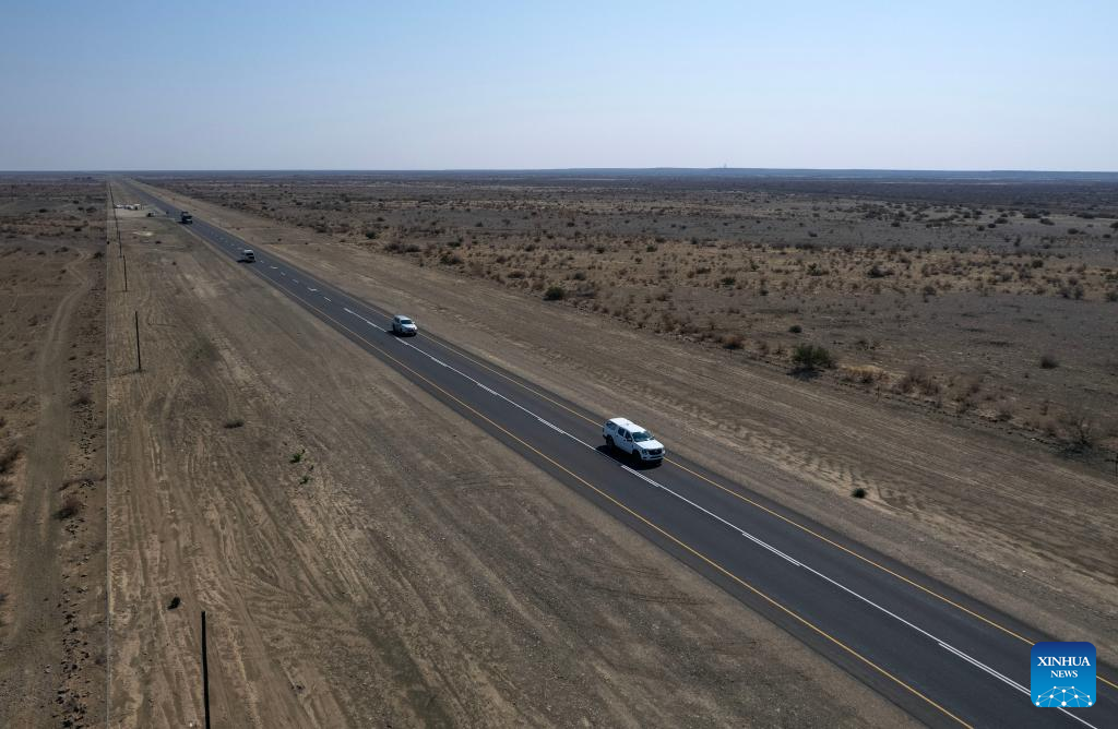 Cars run on the reopened B1 highway in Tses, Namibia, Sept. 3, 2024.(Xinhua/Chen Cheng)