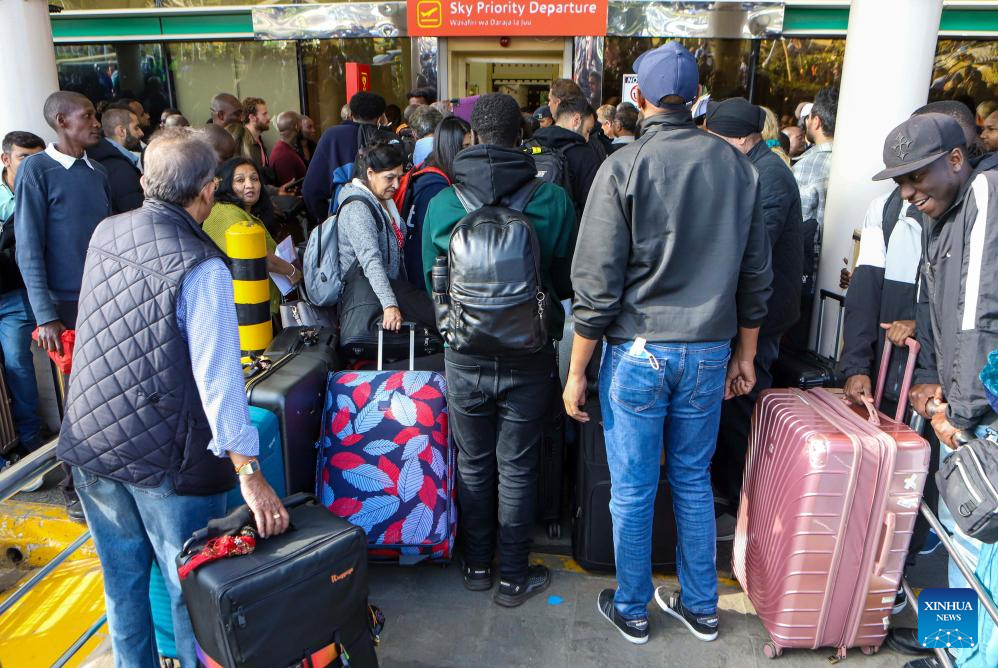 Passengers are stranded following a strike by aviation workers at Jomo Kenyatta International Airport in Nairobi, Kenya, on Sept. 11, 2024. Kenyan aviation workers have paralyzed flight operations at the country's Jomo Kenyatta International Airport (JKIA) in Nairobi, the capital of Kenya, over the planned leasing of the airport to an Indian company.
