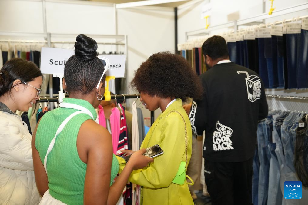 People attend the Allfashion Sourcing exhibition in Cape Town, South Africa, on Sept. 10, 2024. The Allfashion Sourcing exhibition, a renowned annual fashion and textile trade show, kicked off on Tuesday in Cape Town, the legislative capital of South Africa. (Xinhua/Wang Lei)