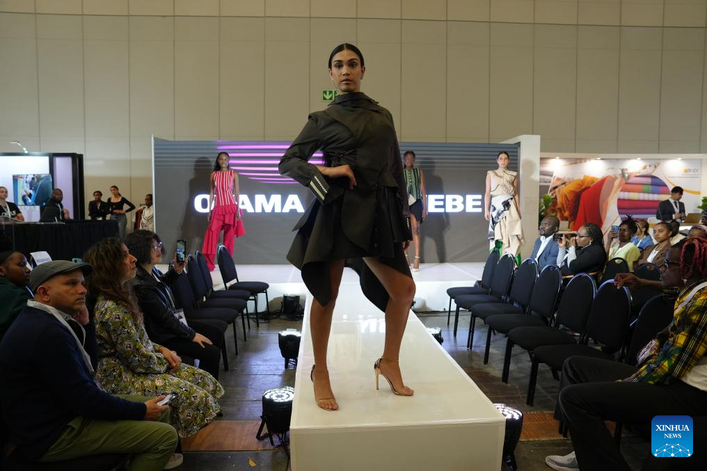 People watch a fashion show at the Allfashion Sourcing exhibition in Cape Town, South Africa, on Sept. 10, 2024. The Allfashion Sourcing exhibition, a renowned annual fashion and textile trade show, kicked off on Tuesday in Cape Town, the legislative capital of South Africa. (Xinhua/Wang Lei)
