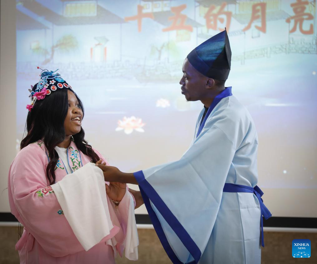 Students from the Confucius Institute at the University of Nairobi perform during a Mid-Autumn Festival celebration in Nairobi, Kenya, on Sept. 13, 2024. Africa Star Railway Operation Company (Afristar), the operator of Kenya's Standard Gauge Railway (SGR), and the Confucius Institute at the University of Nairobi, Kenya's oldest university, on Friday partnered to host the upcoming Mid-Autumn Festival, one of China's most important traditional holidays. (Xinhua/Li Yahui)