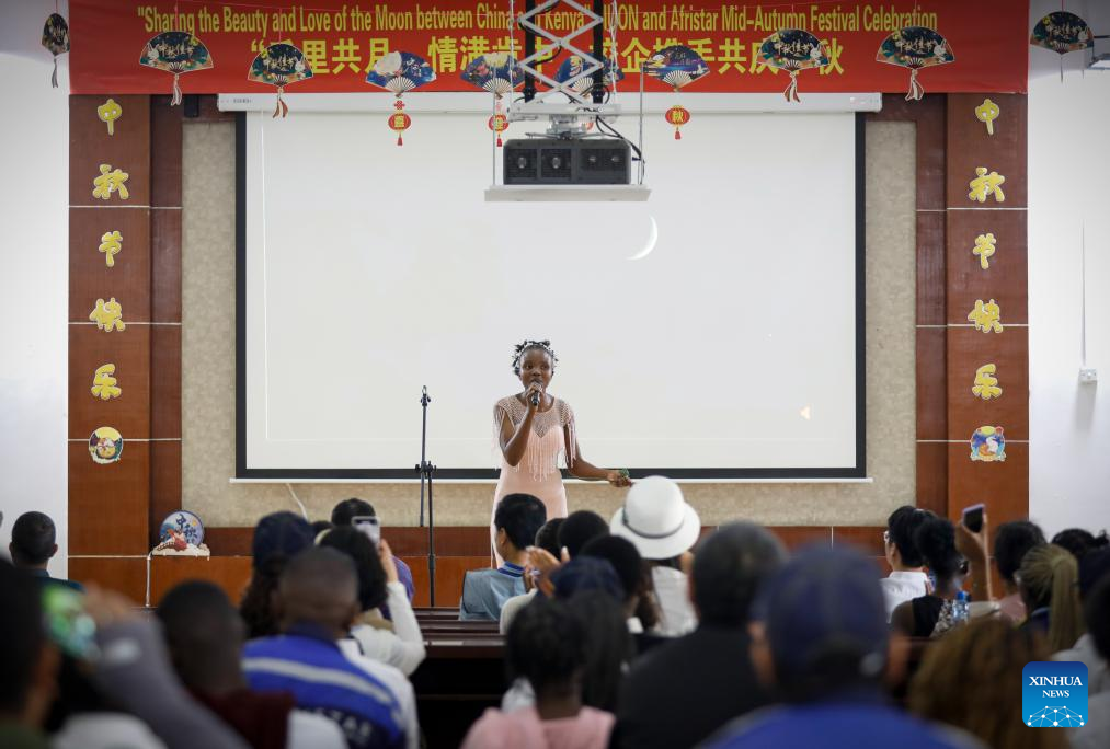 A student from the Confucius Institute at the University of Nairobi sings a Chinese song during a Mid-Autumn Festival celebration in Nairobi, Kenya, on Sept. 13, 2024. Africa Star Railway Operation Company (Afristar), the operator of Kenya's Standard Gauge Railway (SGR), and the Confucius Institute at the University of Nairobi, Kenya's oldest university, on Friday partnered to host the upcoming Mid-Autumn Festival, one of China's most important traditional holidays. (Xinhua/Li Yahui)