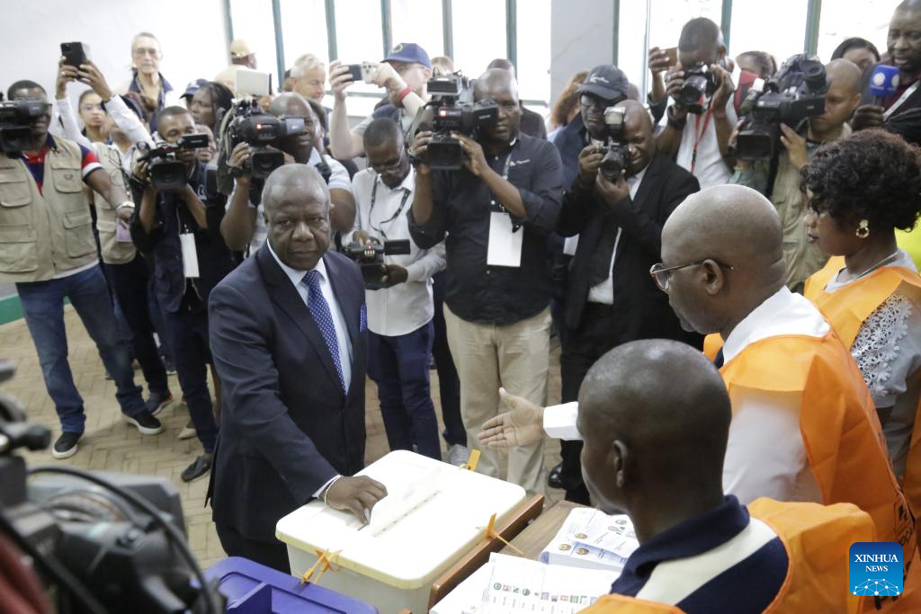 Mozambican President Filipe Nyusi casts his vote at a polling station in Maputo, Mozambique, on Oct. 9, 2024. Mozambicans began voting on Wednesday for a new president. Around 17 million people are registered to vote, including 333,839 voters registered in the diaspora participating from seven African and two European countries as part of Mozambique's global electoral process. (Photo by Israel Zefanias/Xinhua)