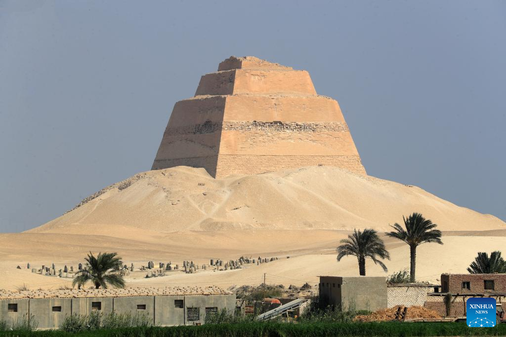 This photo taken on Oct. 16, 2024 shows a view of the Meidum Pyramid in Beni Suef Governorate, Egypt. Meidum Pyramid is thought to be built by Pharaoh Sneferu, the first pharaoh of the Fourth Dynasty of ancient Egypt. The pyramid has a history of around 4,600 years. (Xinhua/Sui Xiankai)