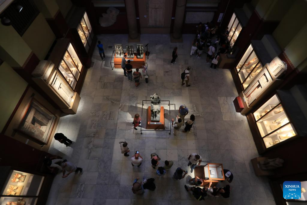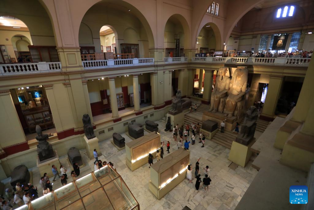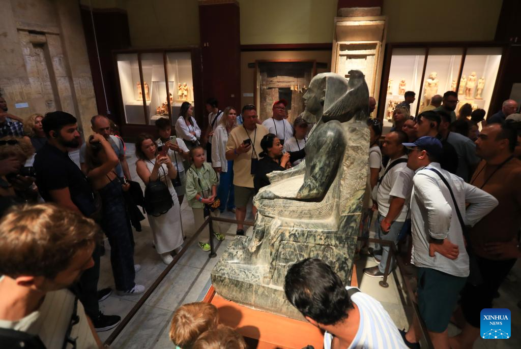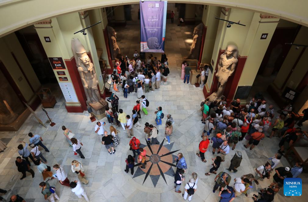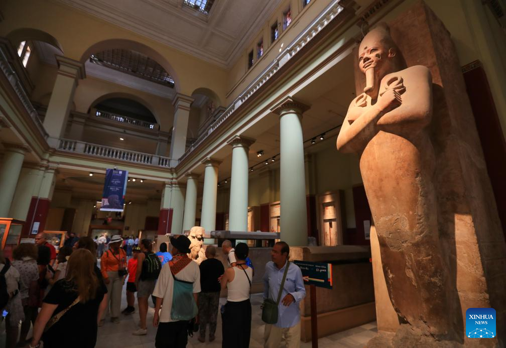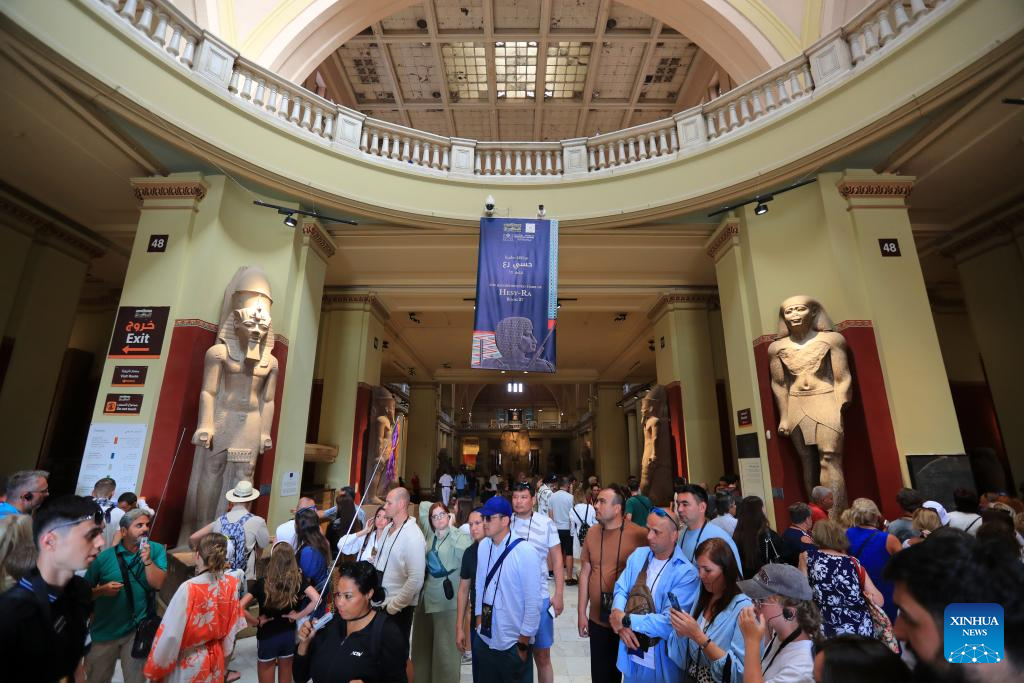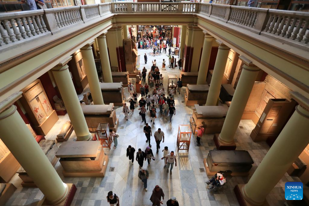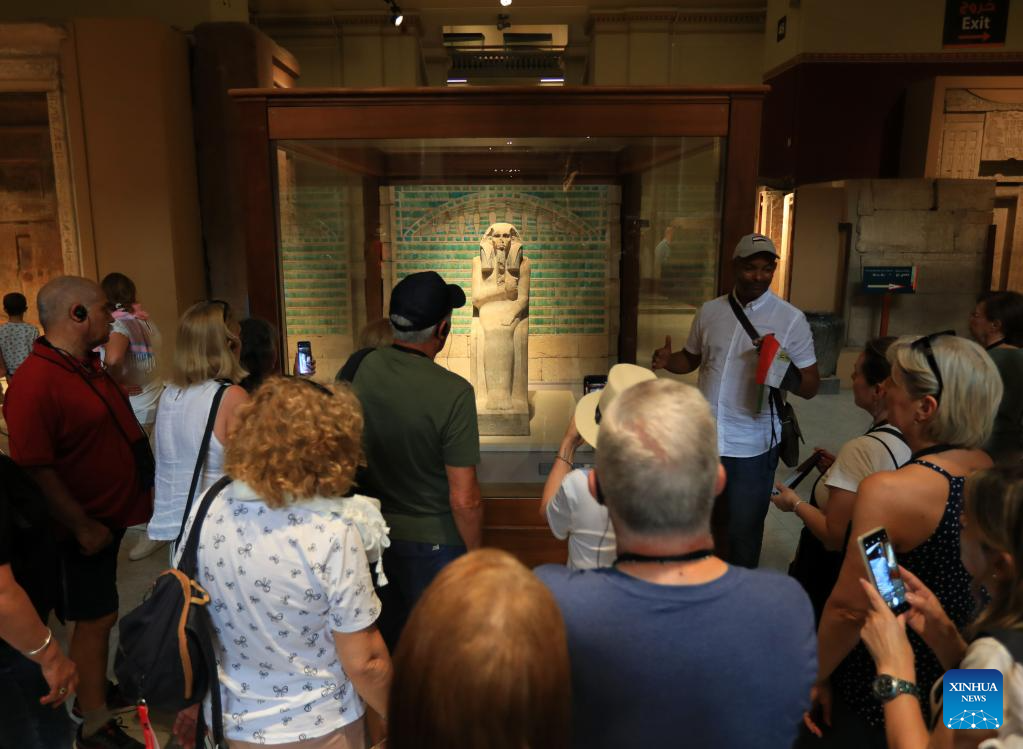 Tourists visit the Egyptian Museum in Cairo, Egypt, on Oct. 18, 2024. Egypt has entered its peak tourism season as the weather becomes cooler. (Xinhua/Sui Xiankai)