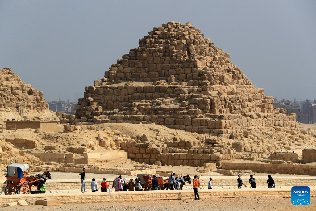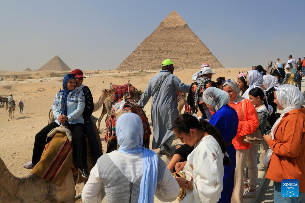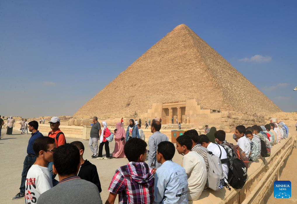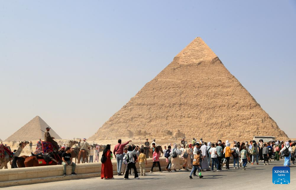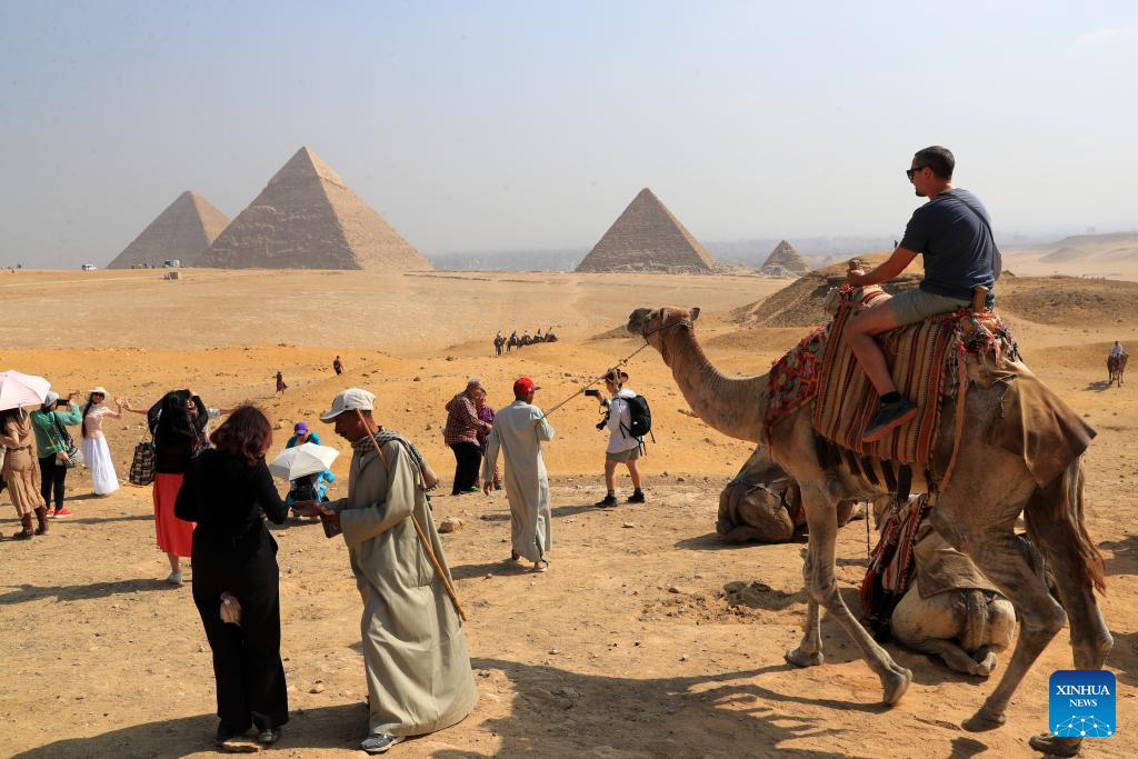 Tourists visit the Giza Pyramids scenic spot in Giza, Egypt, on Oct. 19, 2024. Egypt has entered its peak tourism season as the weather becomes cooler. (Xinhua/Sui Xiankai)