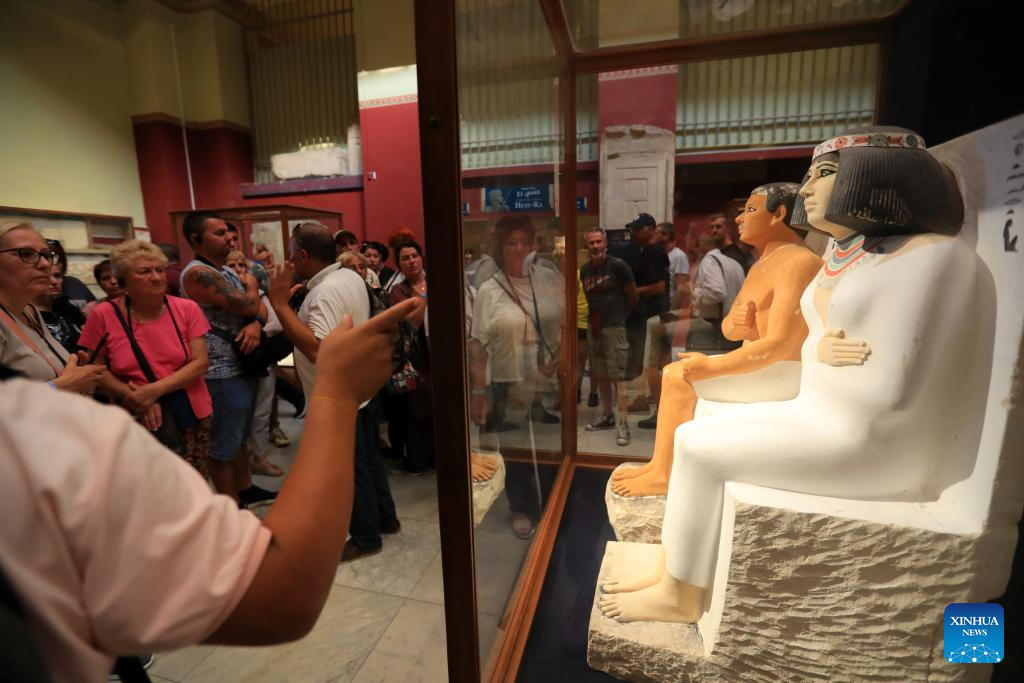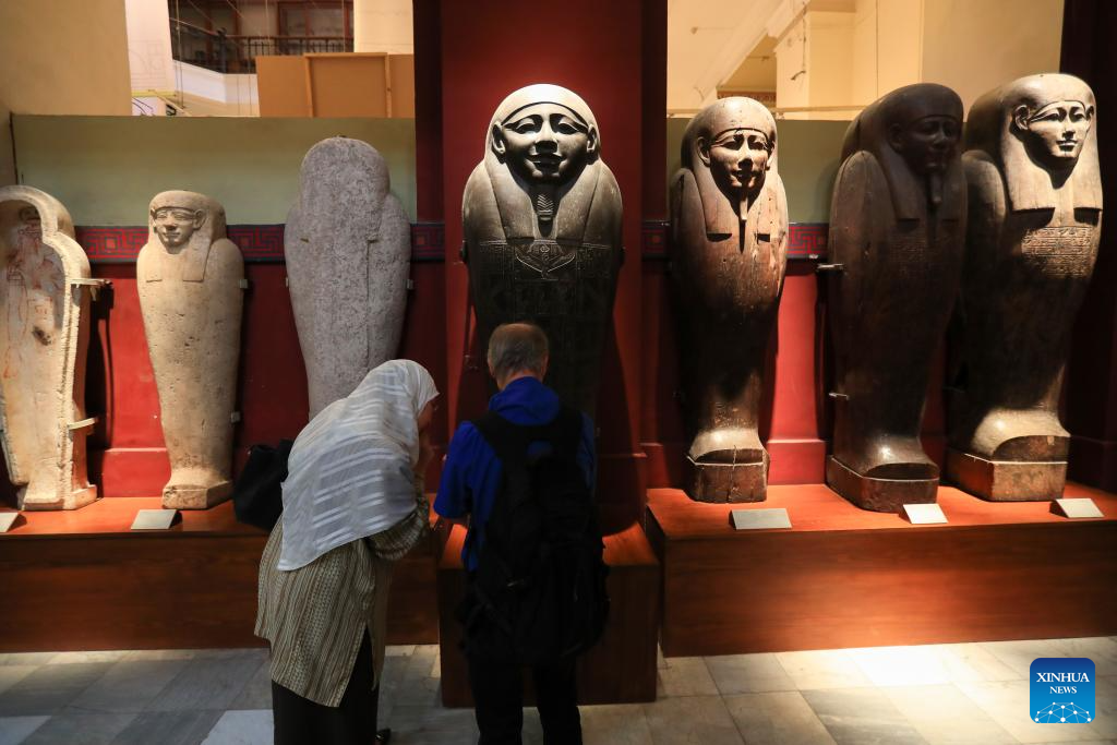Tourists look at exhibits at Egyptian Museum in Cairo, Egypt, on Oct. 18, 2024. Egypt has entered its peak tourism season as the weather becomes cooler. (Xinhua/Sui Xiankai)