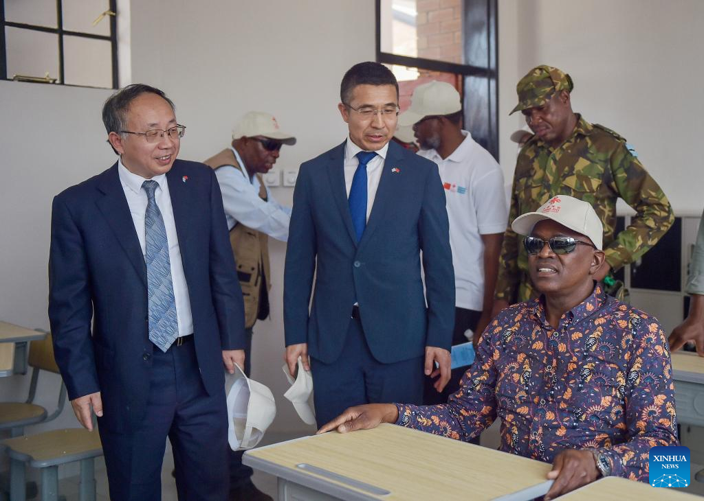 Botswanan President Mokgweetsi Masisi (1st R, front) tours a classroom of the China-aided Ramaeba Primary School in Kazungula village of Kasane town, Botswana, Oct. 27, 2024. (Photo by Tshekiso Tebalo/Xinhua)