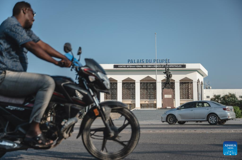 This photo taken on Nov. 5, 2024 shows the People's Palace in Djibouti City, Djibouti. Djibouti, located at the tip of the Horn of Africa, borders Somalia to the southeast, Eritrea to the north, and is adjacent to Ethiopia to the west and south. With a 372-km-long coastline along the Gulf of Aden, it sits at the strategic Bab el Mandeb Strait, connecting the Red Sea to the Indian Ocean. Its advantageous location and natural harbors establish it as a key regional trade and transshipment hub. (Xinhua/Wang Guansen)