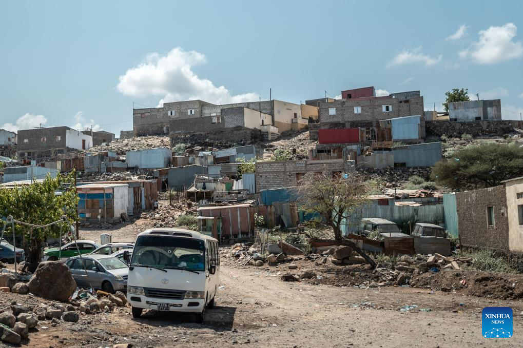 This photo taken on Nov. 7, 2024 shows a suburb view in Djibouti City, Djibouti. Djibouti, located at the tip of the Horn of Africa, borders Somalia to the southeast, Eritrea to the north, and is adjacent to Ethiopia to the west and south. With a 372-km-long coastline along the Gulf of Aden, it sits at the strategic Bab el Mandeb Strait, connecting the Red Sea to the Indian Ocean. Its advantageous location and natural harbors establish it as a key regional trade and transshipment hub. (Xinhua/Wang Guansen)