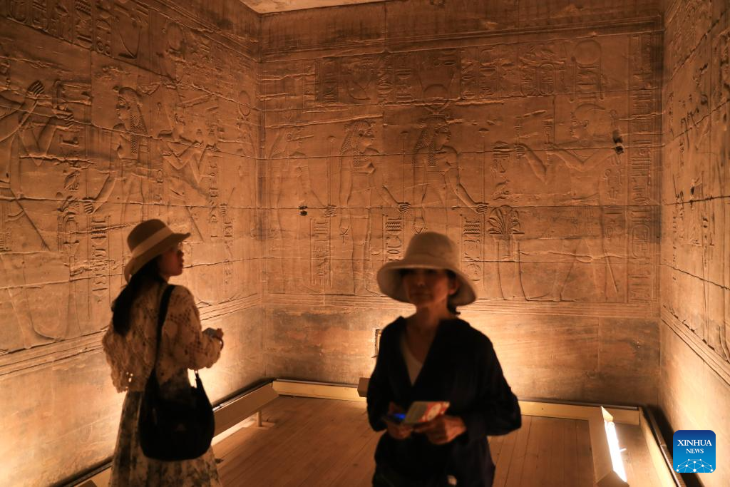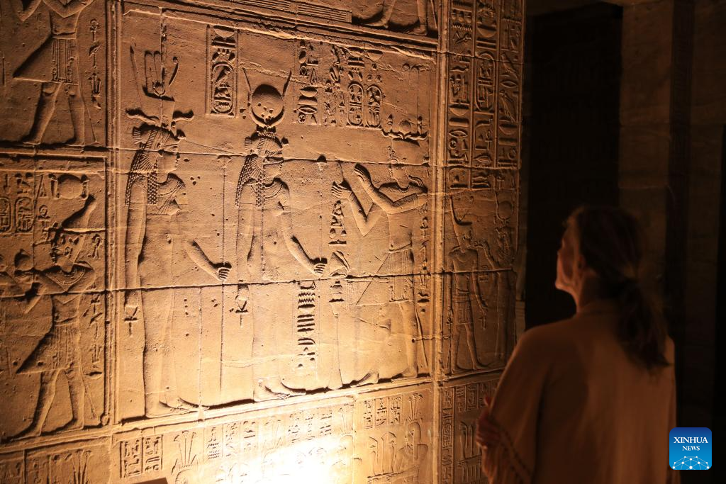 A tourist views the relief painting in the Philae temple complex in Aswan, Egypt, Nov. 22, 2024.