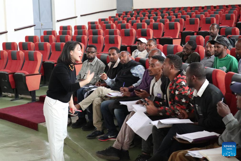 Song Ruirong, a Chinese teacher of the Confucius Institute at Addis Ababa University, teaches Chinese to Ethiopian tourism professionals at Addis Ababa University in Ethiopia, Dec. 2, 2024.