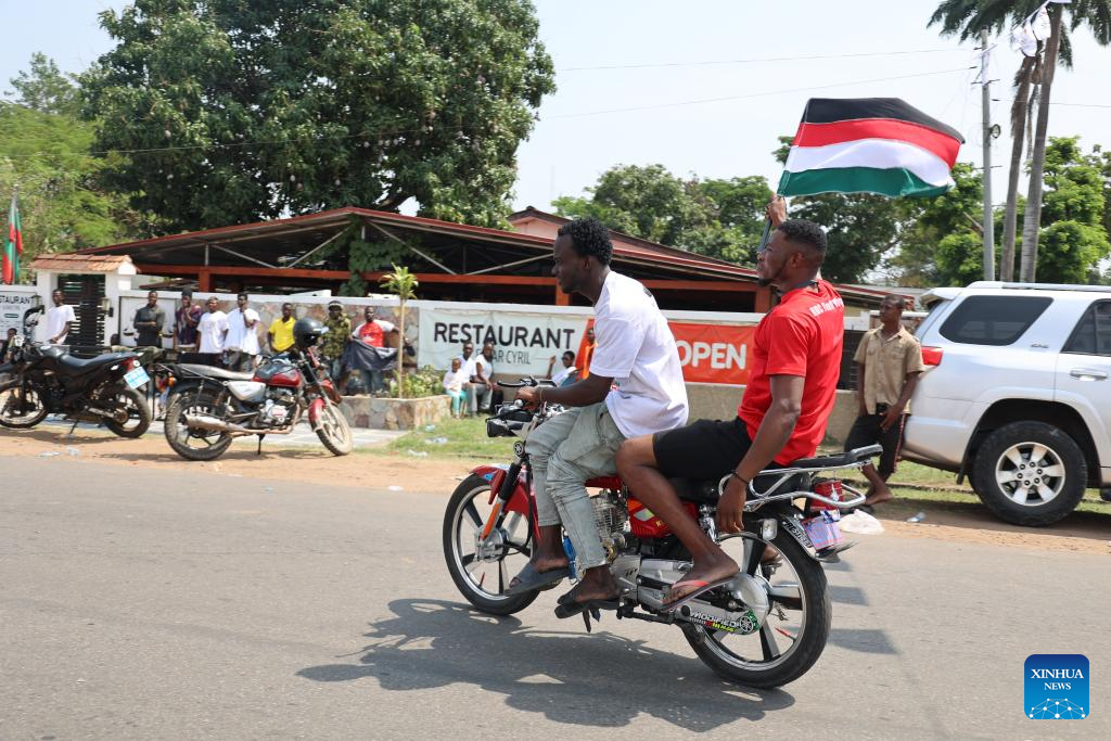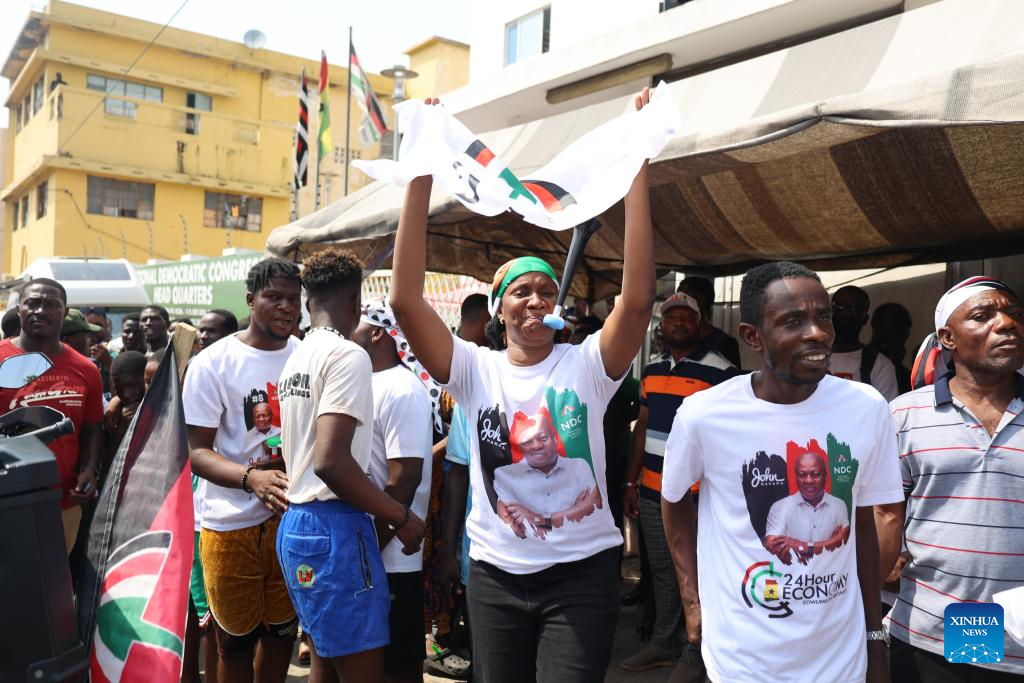 Supporters of John Dramani Mahama celebrate after his winning in the presidential election in Accra, Ghana, Dec. 8, 2024. (Xinhua/Seth)