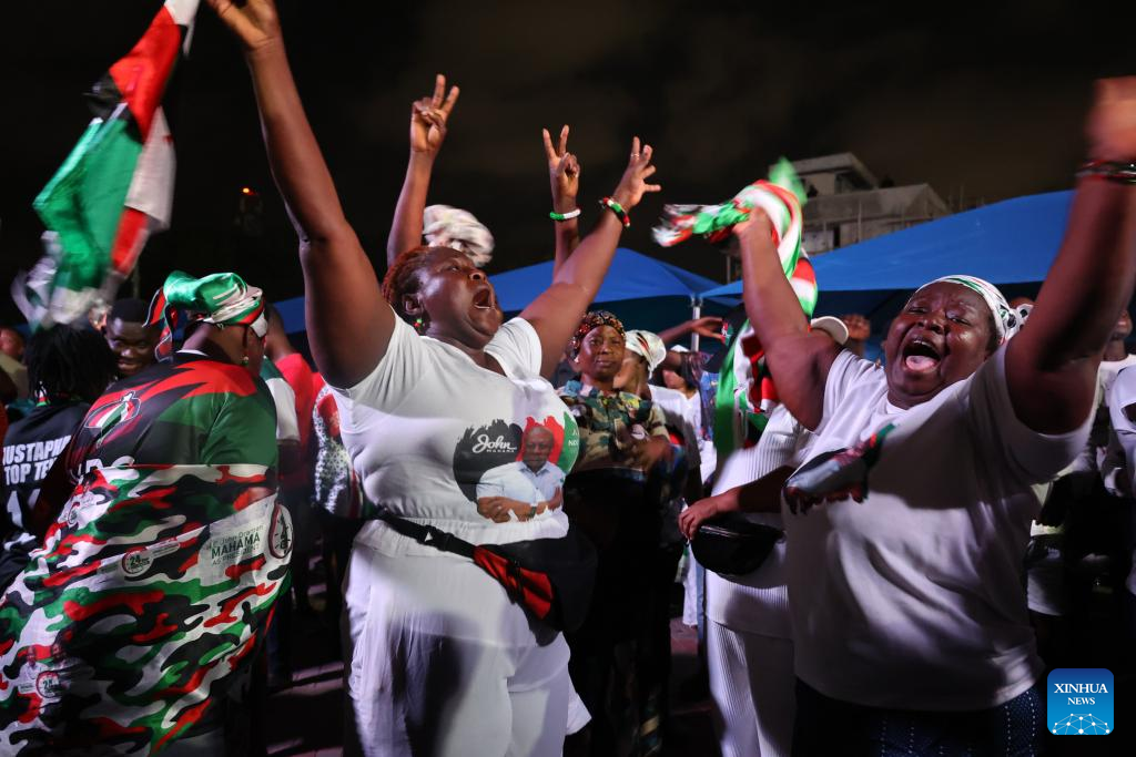 Supporters of John Dramani Mahama celebrate after his winning in the 2024 presidential election in Accra, Ghana, Dec. 9, 2024. (Xinhua/Seth)
